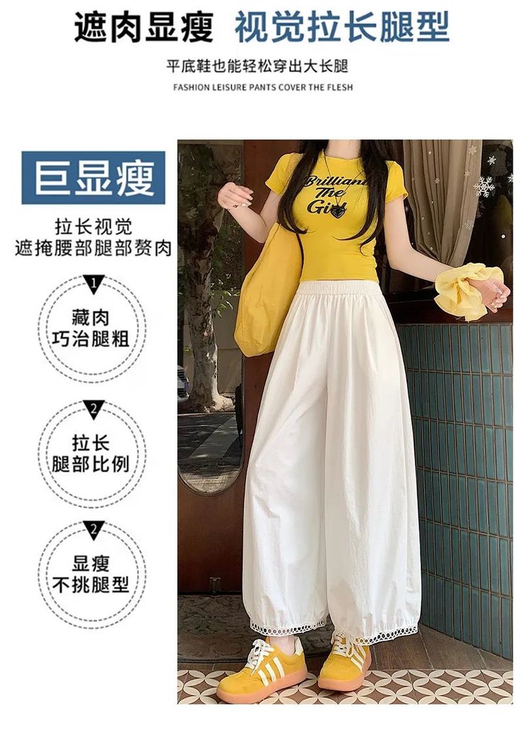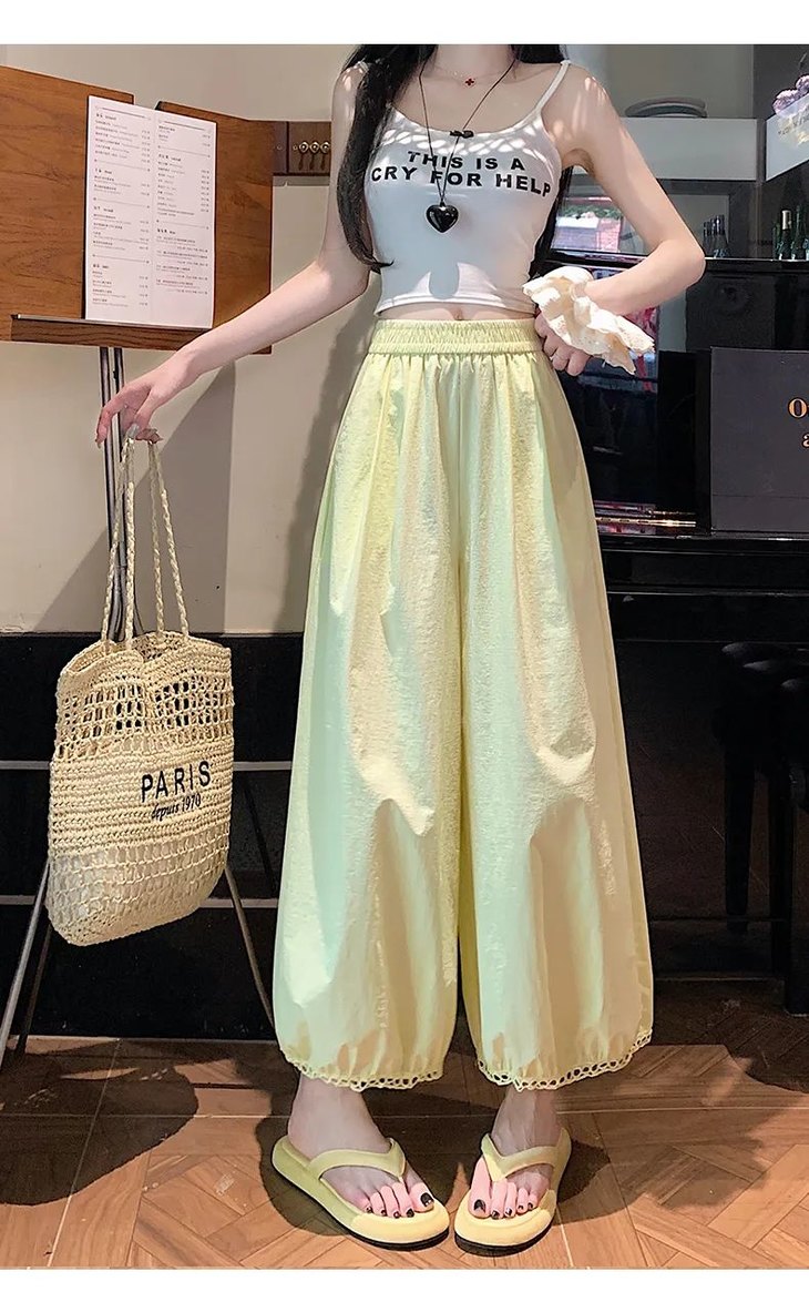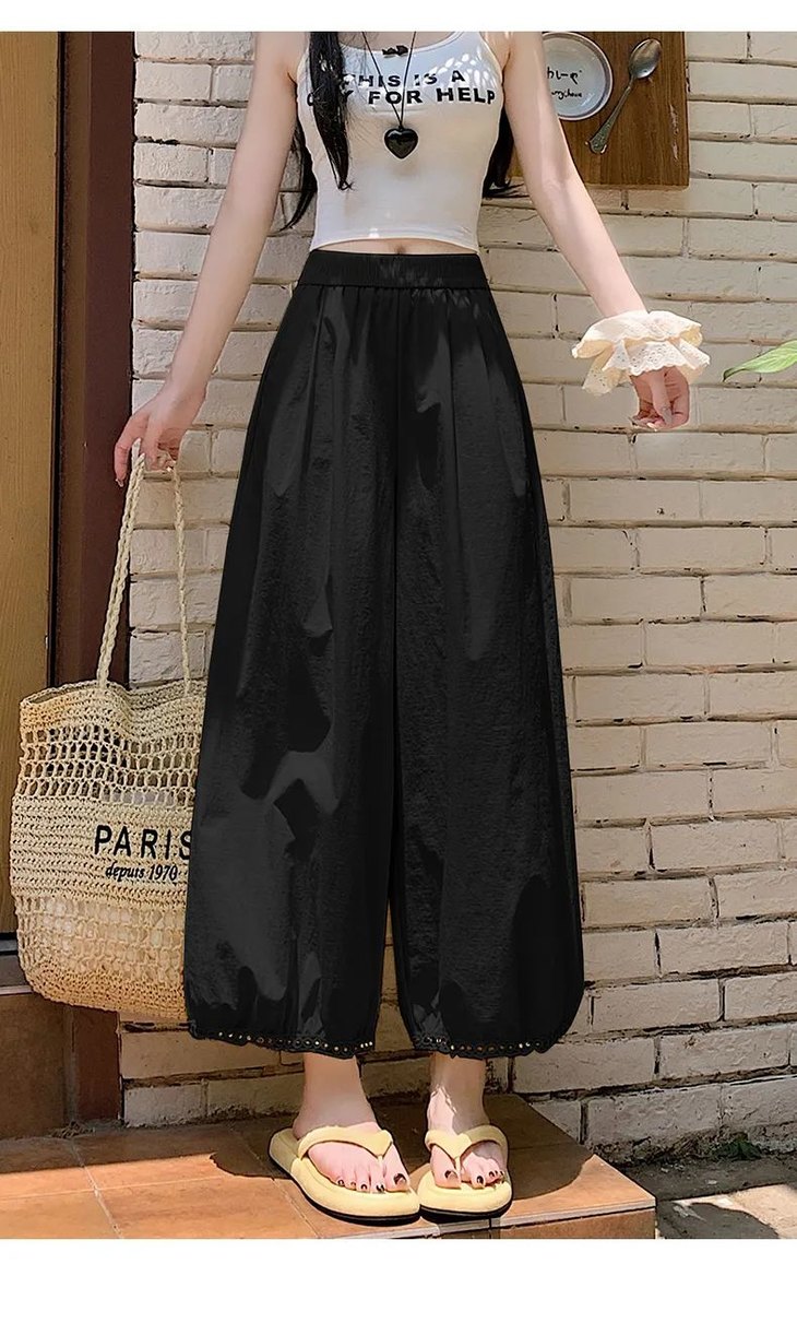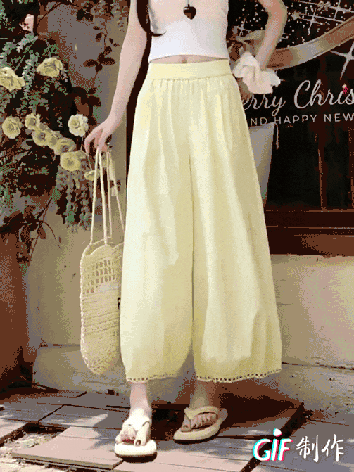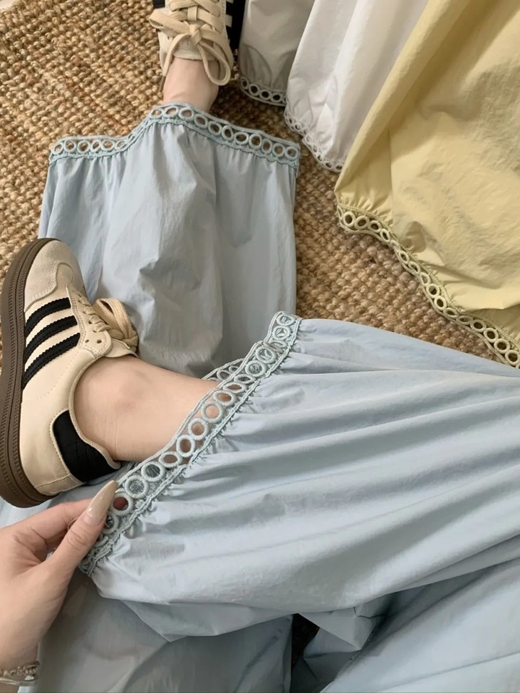 与其它阔腿裤相比,蕾丝镂空花苞阔腿裤明显更凉快;