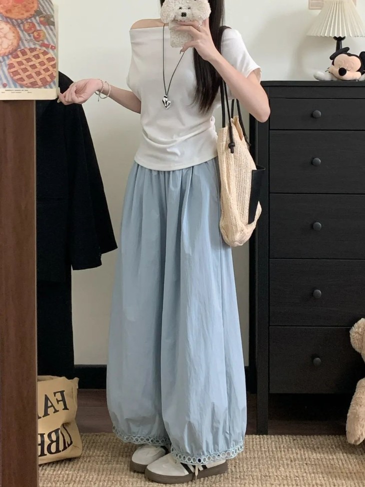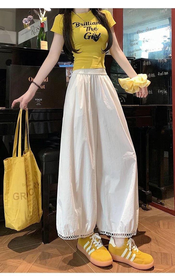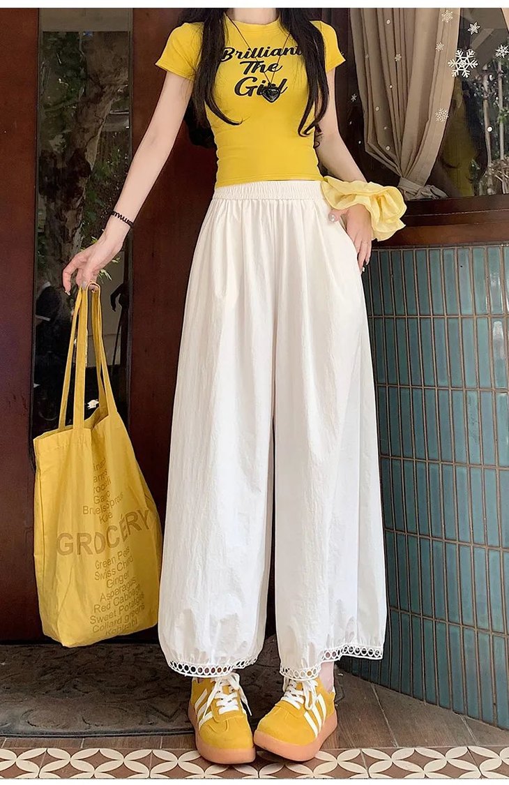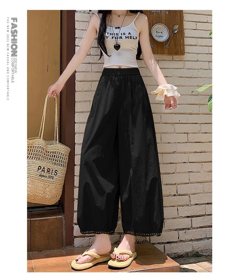 与其它阔腿裤相比,蕾丝镂空花苞阔腿裤明显更凉快;