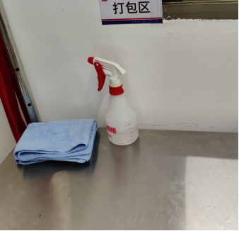 问题描述:打包台面未配备蓝色毛巾、酒精喷壶使用