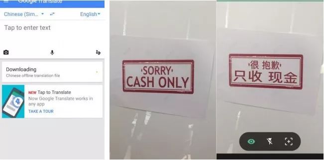 道路名称看不懂?连菜单也看不懂? Google翻译绝对管够,可以手动输入文字,使用语音进行同声传译,支持拍照翻译。自动识别文字并翻译成中文,路牌、餐厅菜单都可以搞定啦。