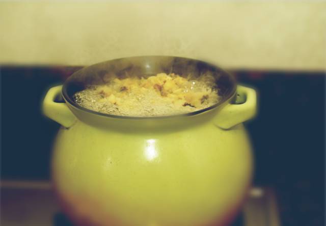 2、米下锅,开锅后,改成中火煲煮30分钟,就做好了。