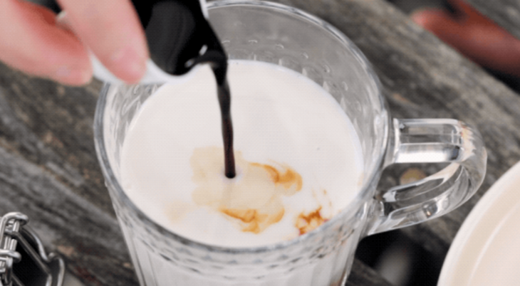 做法:在「扁桃仁效果」中加入一份咖啡液,搅拌均匀,一杯植物奶拿铁就诞生了~