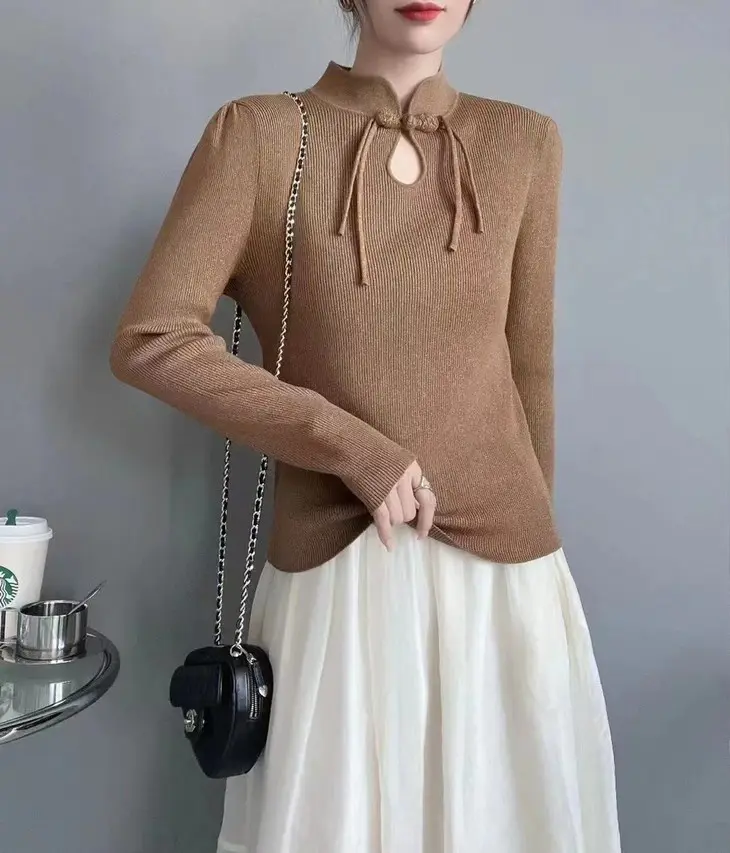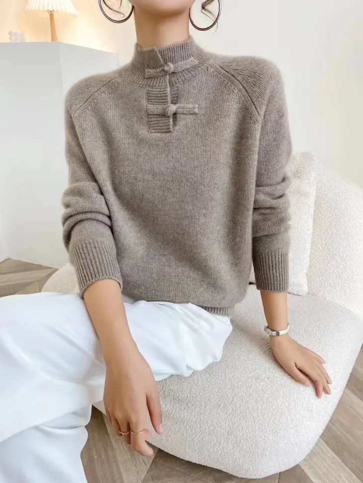 连领的设计温暖简练,极简版型修身藏肉,盘扣设计恰到好处,带着一种古典优雅的韵味,浪漫又温柔,有一种克制复古的美感。