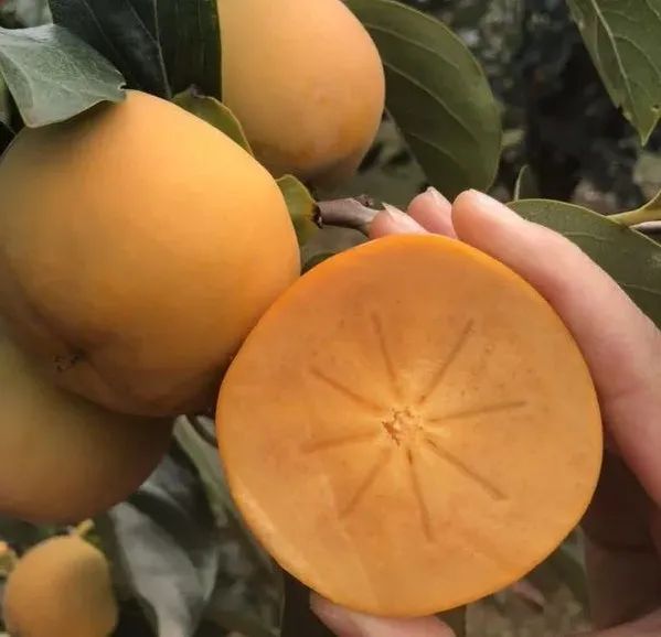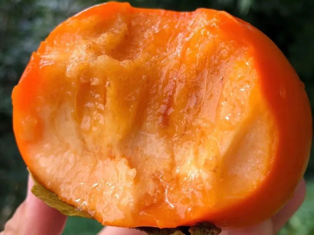 横着切开,可以清楚的看见中心的“小太阳”,这是由糖分堆积而成的,是整个柿子中最甜的部分!也就是大家一直说的糖心!