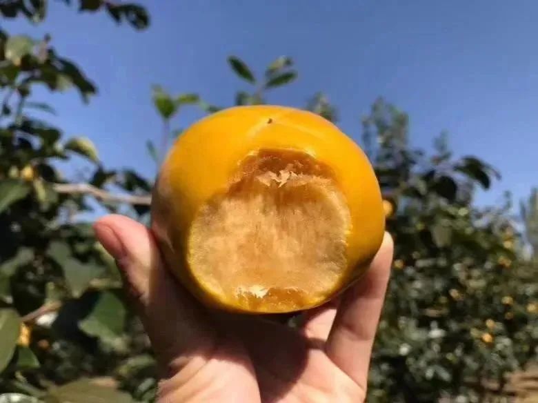 从生长到出售,树上自然成熟,自然脱涩,稍微一嚼,充沛的汁水顺着舌尖沁入喉底,满满都是蜜甜的汁液,充满了清香的柿味。