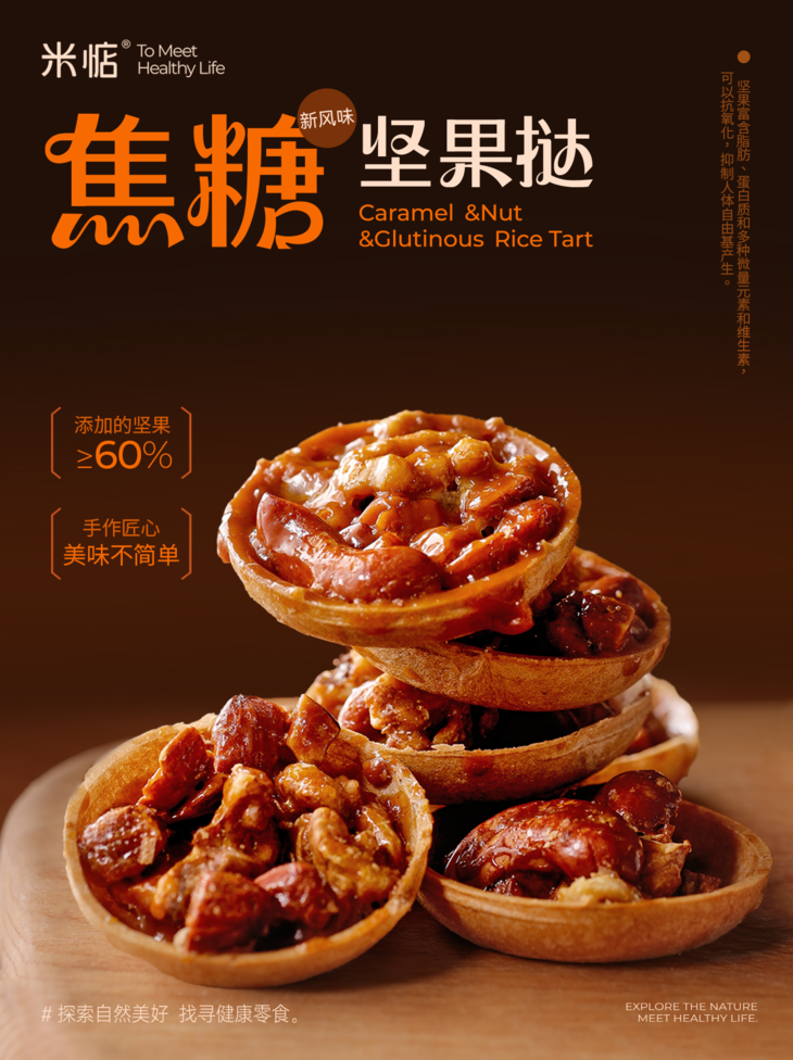 一口就能沦陷的焦糖坚果挞🤩🤩每一瞬间都是满满的幸福感💖💖每一「小」颗 都有「大」来头配料表超干净添加的纯手工零食把你需要的每日坚果量放在一个挞里🥞