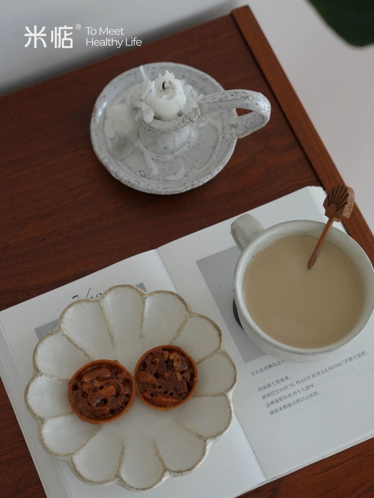 咖啡或茶的苦涩与坚果塔的甜美相互映衬