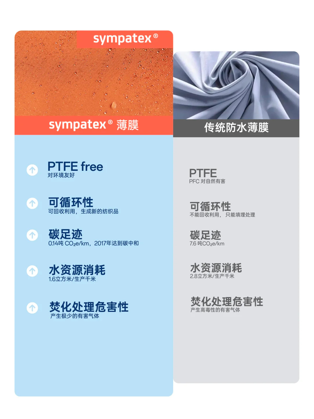 更是一个衡量产品质量和性能的新标准!当一片面料被允许贴上Sympatex的标签就意味着它:
