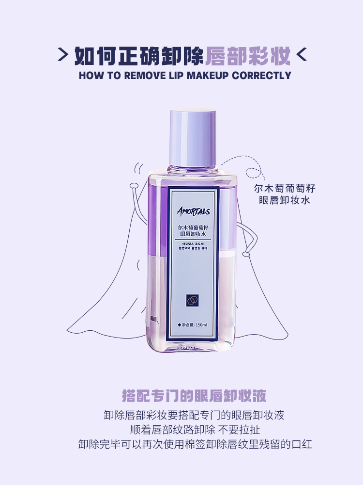 唇部肌肤娇嫩,应使用唇部专用的眼唇卸妆