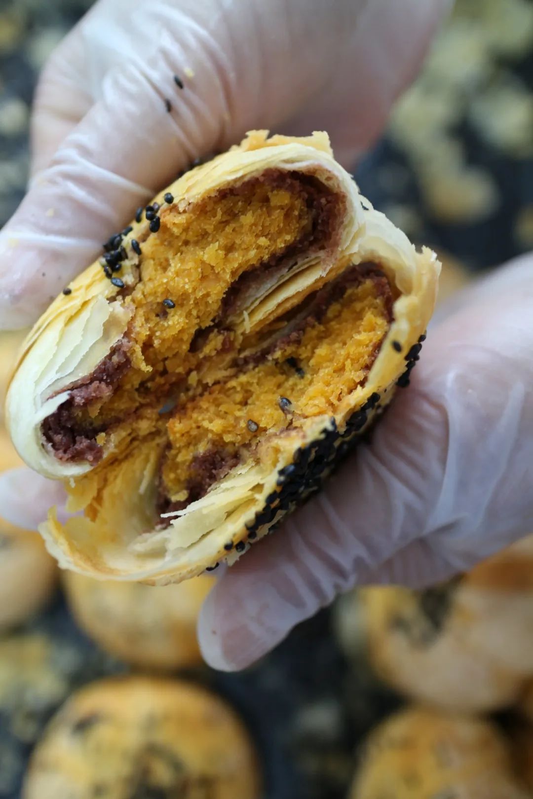 有着朴素的油纸包装,皮酥馅香、咸甜适中,弥漫着满满的人情味道。