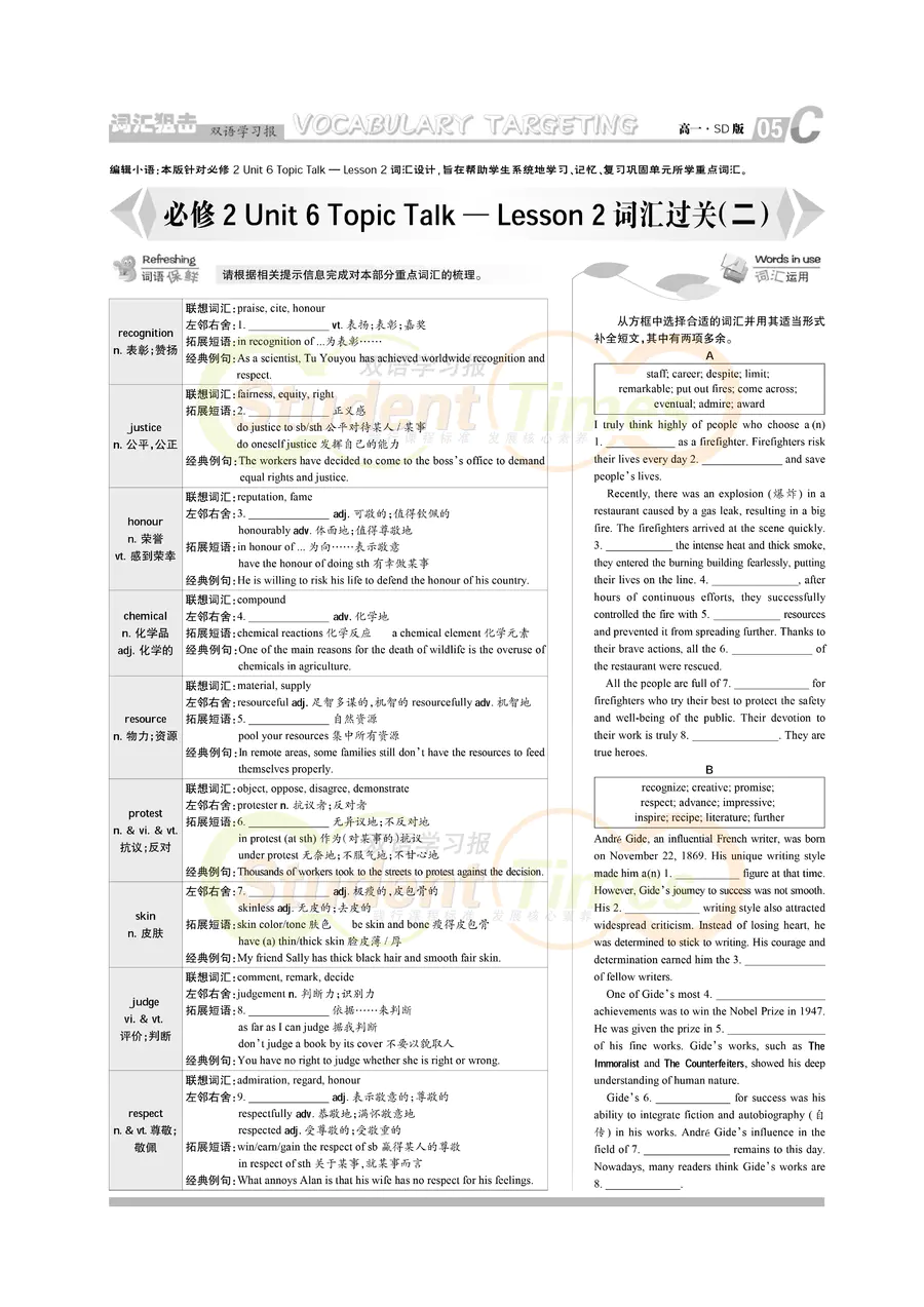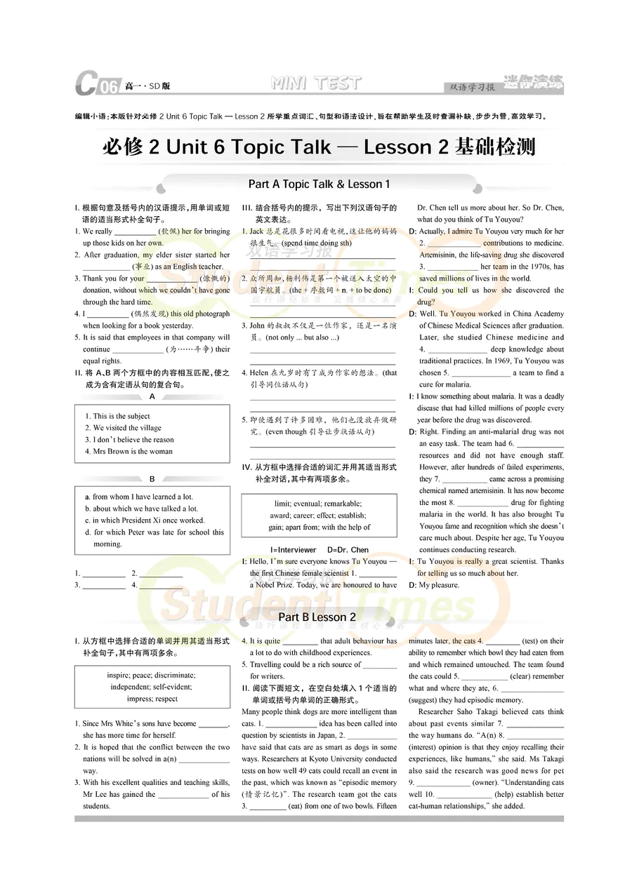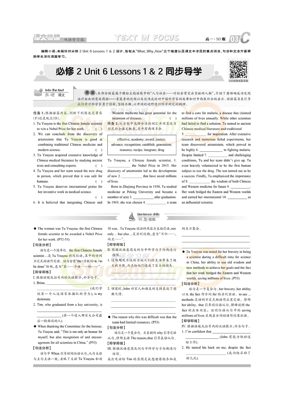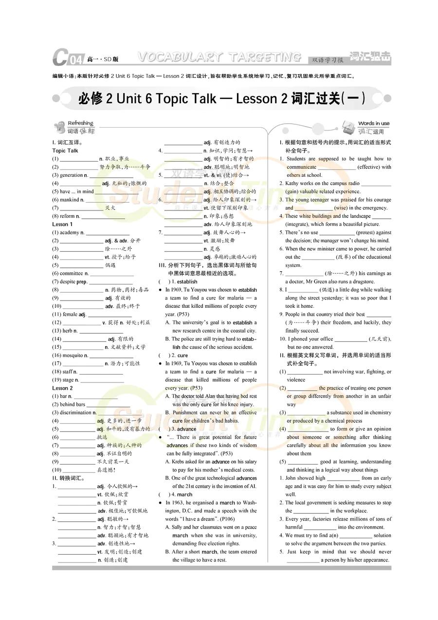 高一 SD版同步辅导 C刊(下学期)
