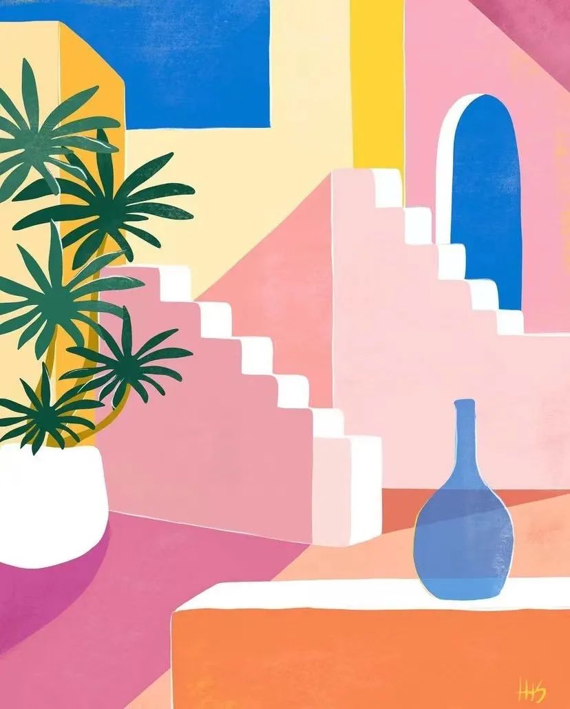 组内小伙伴也特别喜欢另一位波兰插画师Maggie。她的作品受旅行经历影响,画作线条抽象又自由流畅,配色低饱和又温柔,宛如造梦工厂~