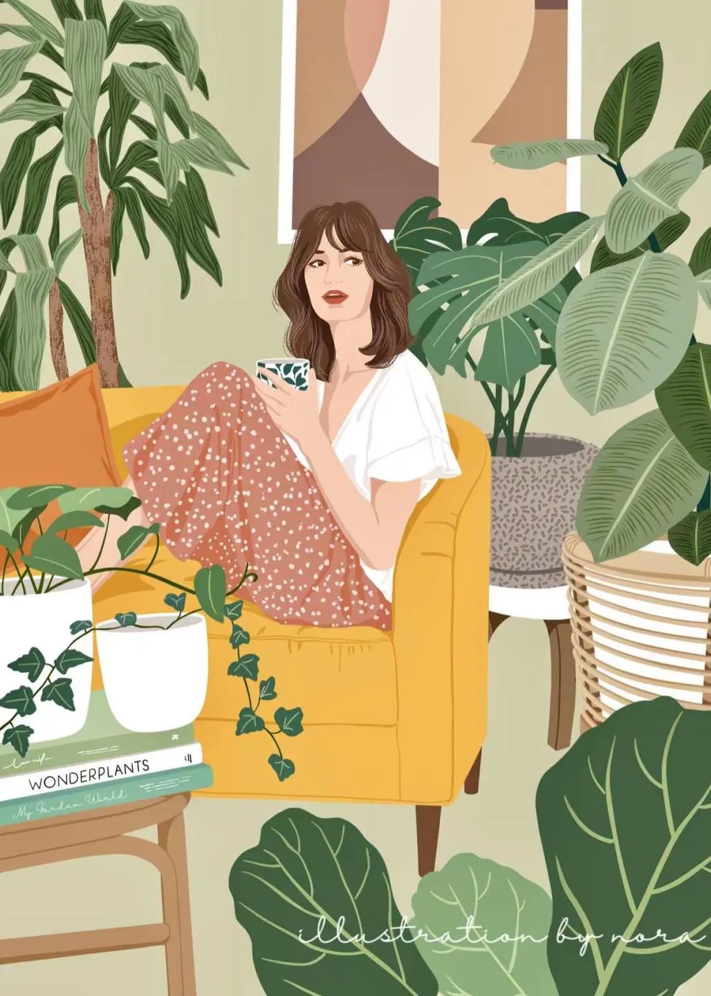 前面我选的《Jungle》则是由插画家Nora创作的。她的画作大部分都是现代女性日常生活场景,很贴近我们的生活,但线条和色调又都非常大气和浪漫。