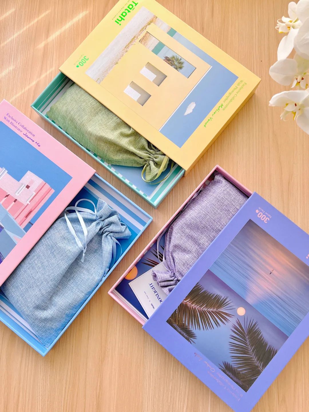 除了理念契合,我们之所以惊喜,还在于Tatahi这组“心临他境”系列拼图全是和国内外视觉艺术家合作创作的。他们风格各不相同,有摄影师也有插画师,但联名的每一款作品都足够时髦、足够美 ,且有浓浓的度假feel~