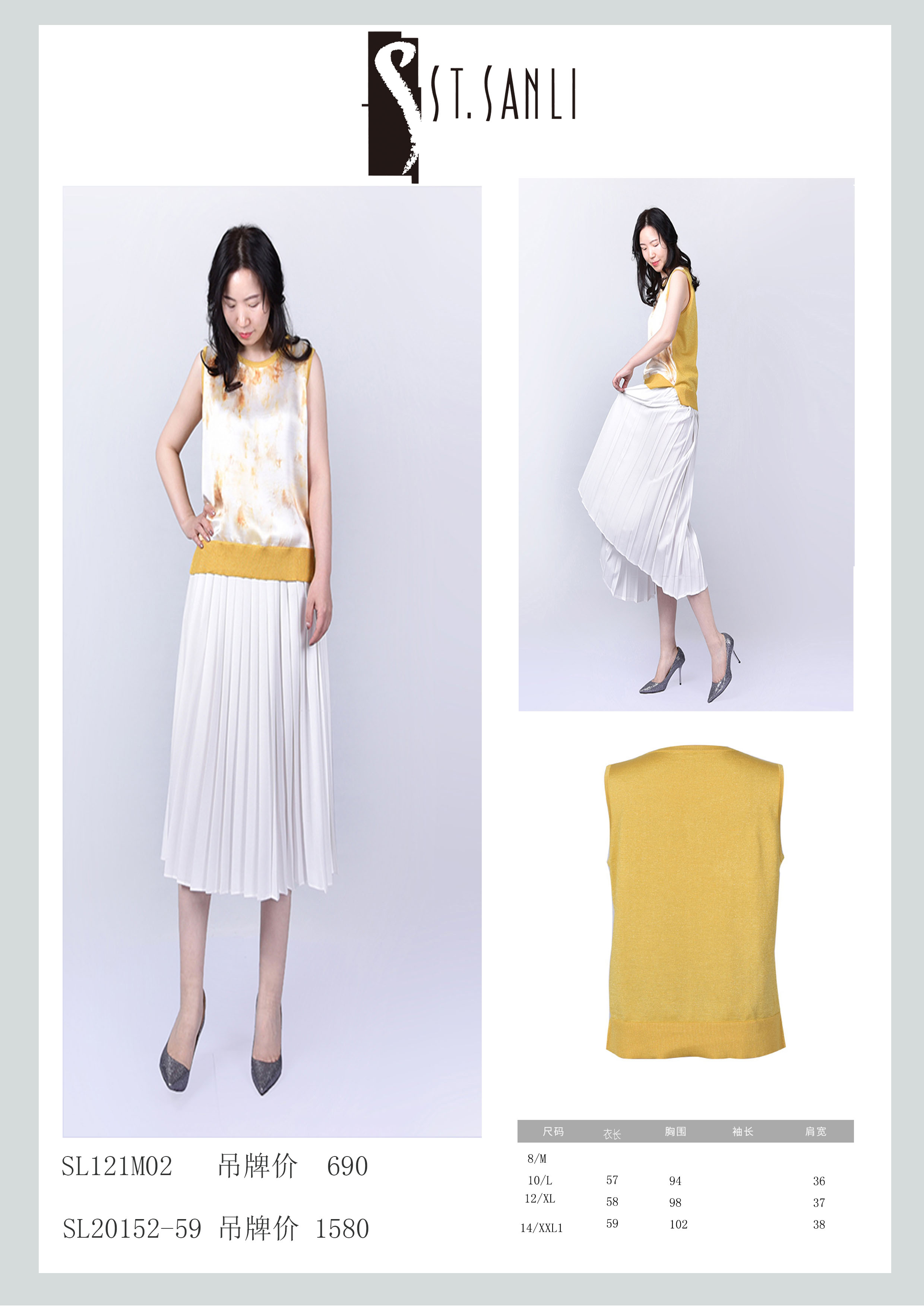 桑蚕丝梭织面料的滑爽结合弹性,透气的丝麻棉针织后片,活动自如,舒适,百搭而不失精致。