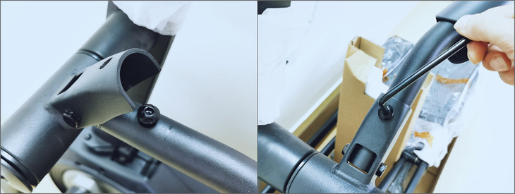 1、整部机器为一体型,没有需要散装的部件,开箱后只需把手把支架往一推,然后分别锁紧中间支架两个镙丝。