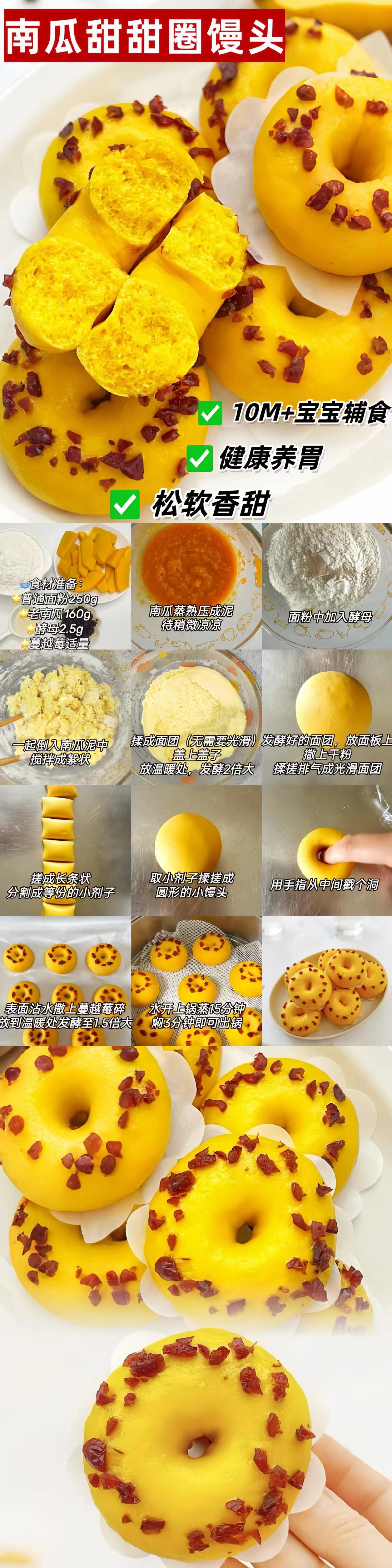 【10M+】营养早餐--- 南瓜甜甜圈馒头