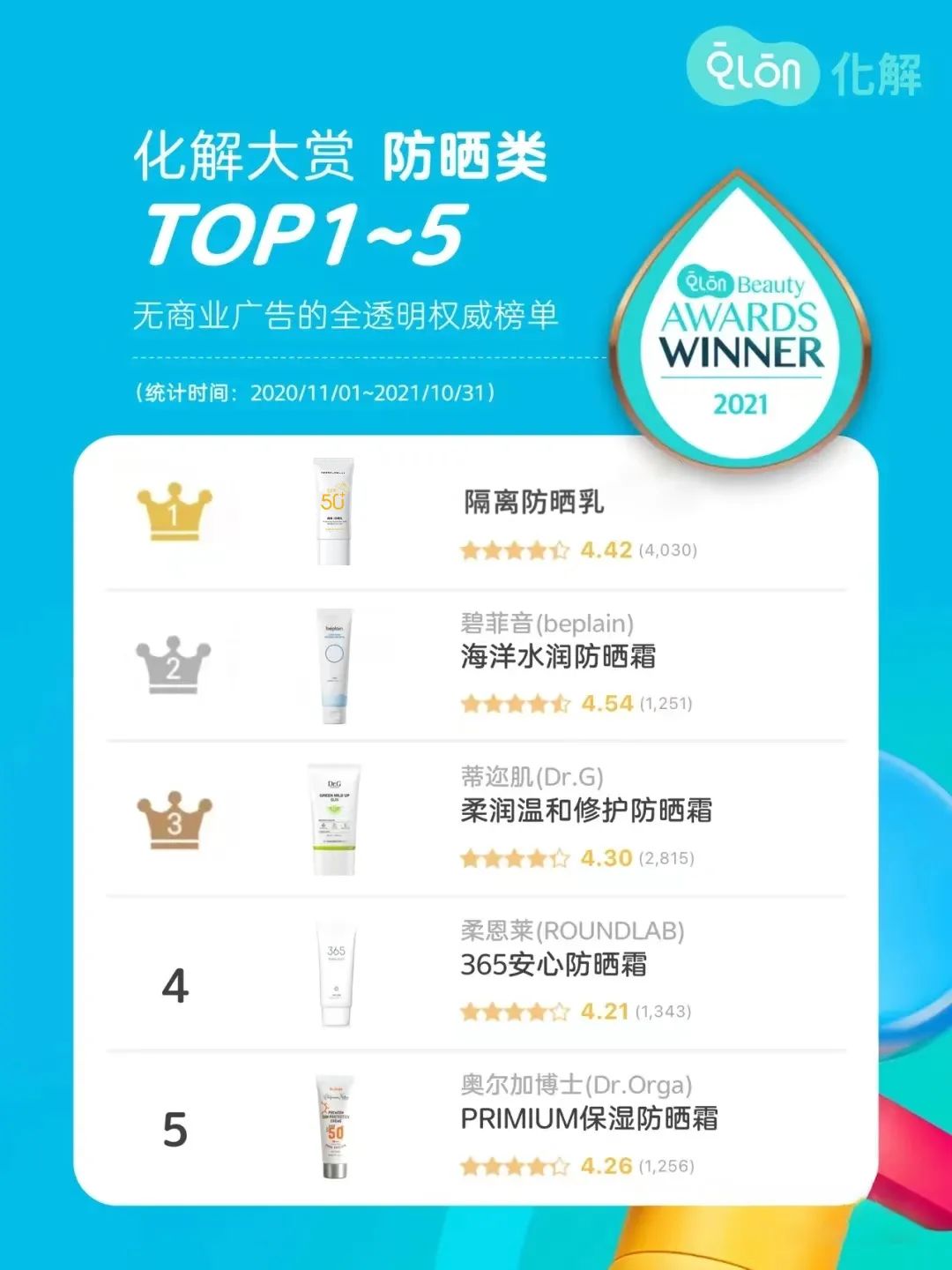 并多次选入韩国成分网站GLOW PICK、AWARDS WINNER等榜单首推防晒名单No.1