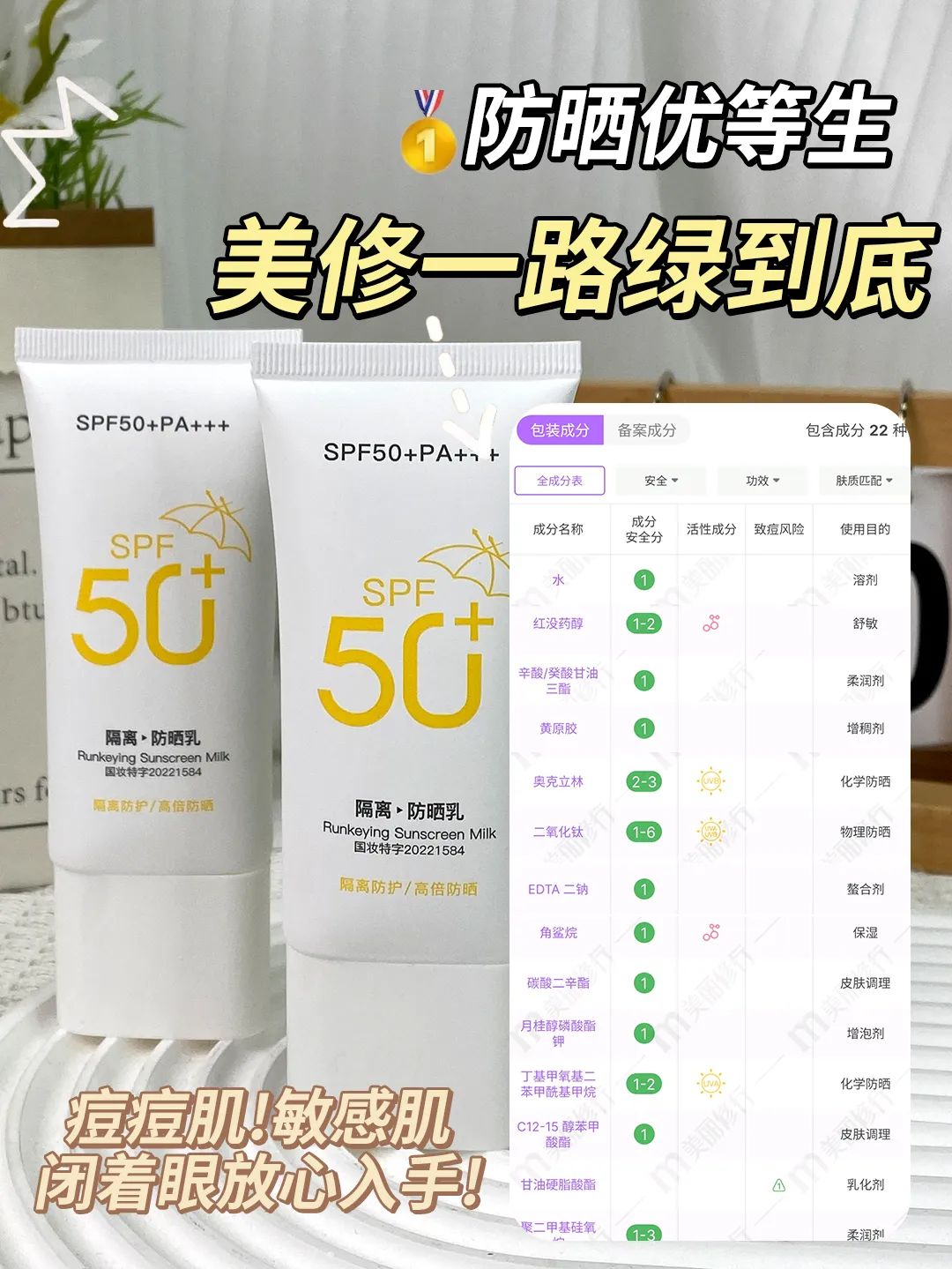 考虑到防晒每天都要用,耗费量巨大;另一方面,咱对防晒的要求也越来越高:既要成分安全好用,又要实惠划算!