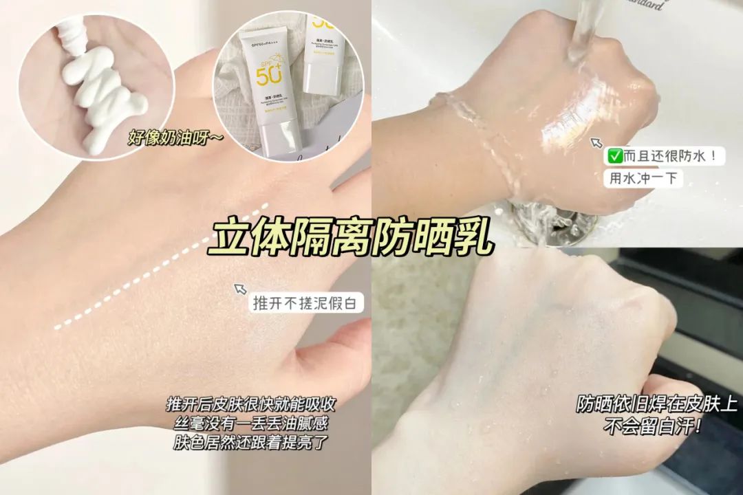 对比市面上其他防晒霜,有些质地粘腻、不好推开,涂上就像戴了一层闷闷的白色面具一样巨丑