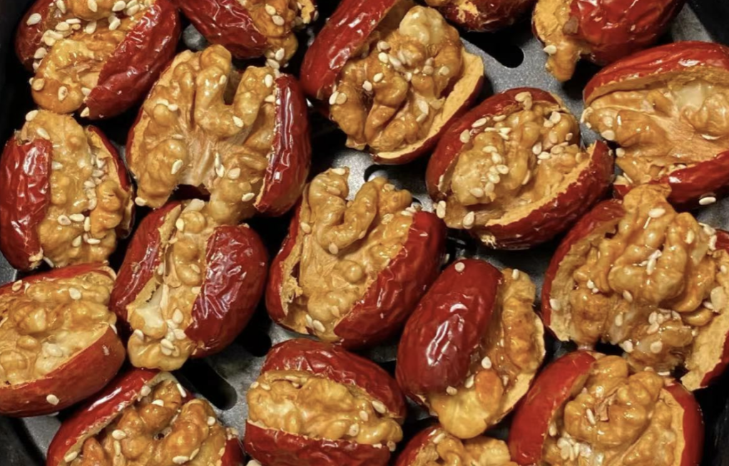 核桃温肾补脑,红枣补中益气、养血安神。从现代营养学看,红枣的丰富维生素C和铁(植物性)与核桃的维生素E、不饱和脂肪酸结合,有助于改善气色和血液循环。