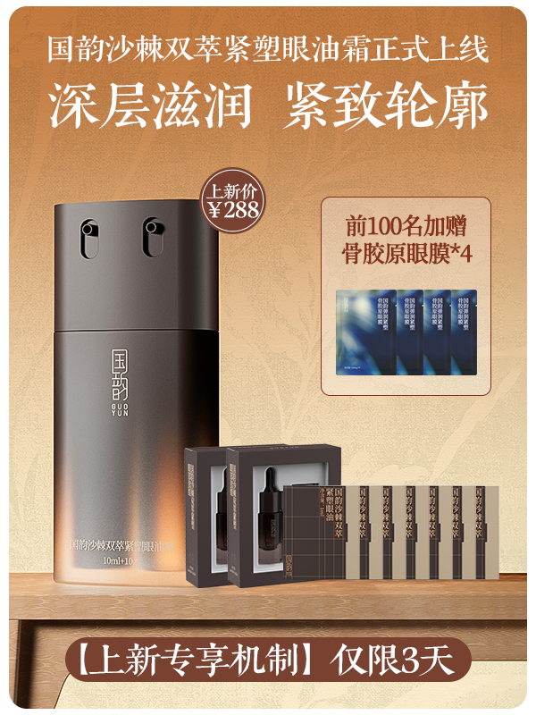 我就拿最近刚上线的国韵沙棘双萃紧塑眼油霜,正好给大家举个例子,咱们可以从成分、设计、功效都来聊一聊。