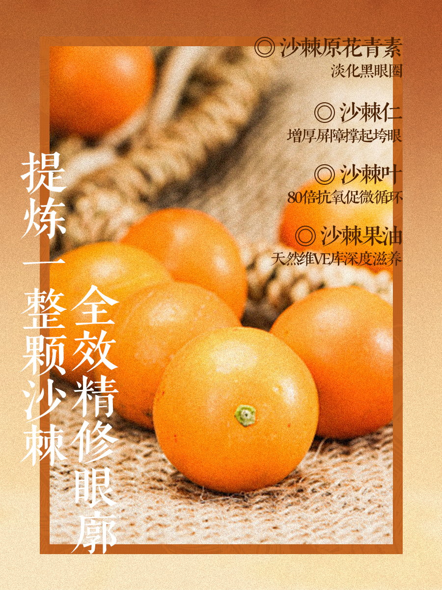再加上沙棘果油本身富含天然维E,深层滋养干纹、增强皮肤厚度,让眼周有弹性,不容易塌。