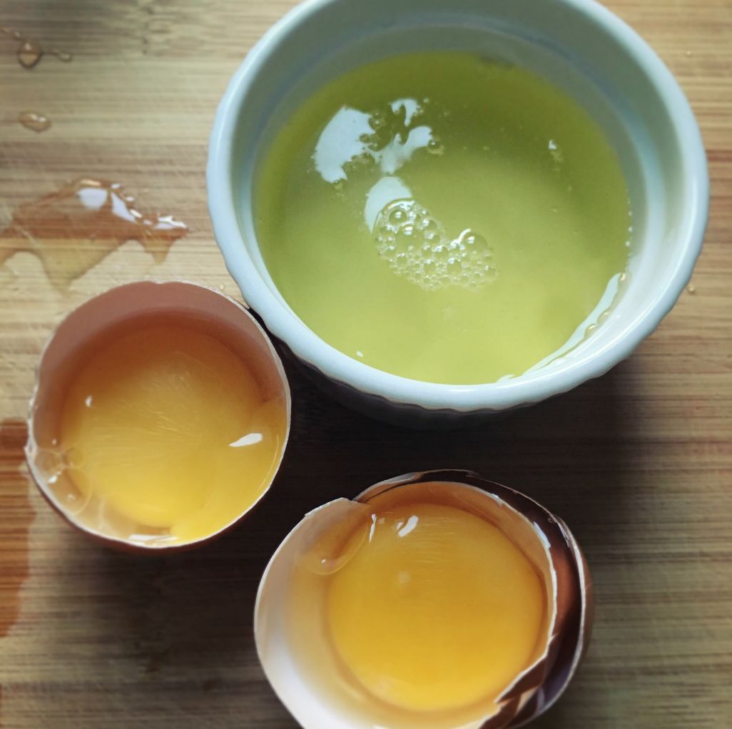 2、蛋黄和蛋清分开,先打匀蛋清放旁边备用,再打匀蛋黄放旁边备用;
