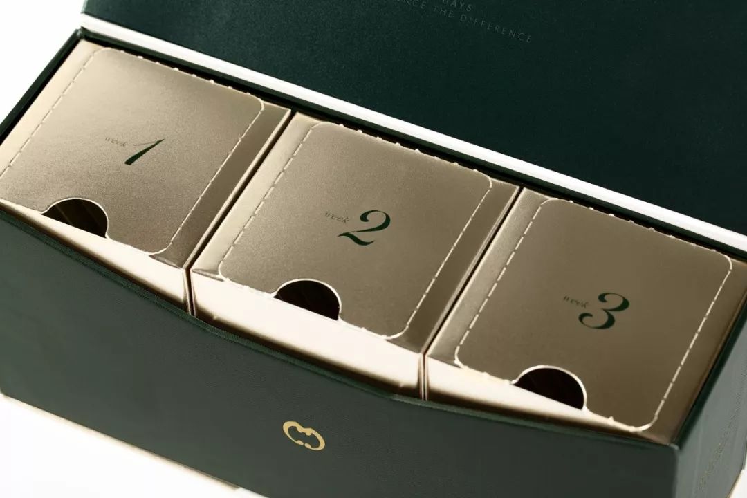 常见的安瓶多是玻璃瓶,CEMOY采用片状包装的原因,是因为成分比较纯,不能暴露在空气中太长时间。一袋2ml,不多不少,不会像面膜的精华,多了也没办法吸收。官方建议2ml可以涂抹在脸上、脖子上,不习惯的话,大家可以分两次使用(用不完一定要密封好),但一定要全脸涂匀,别只涂一点点。一盒21片,分为week1、2、3,盒子上有标明:很多朋友说一袋2ml还是太多,先涂脸,涂完还有剩余的可以涂在脖子上,不喜欢脖子黏黏的,那就分开两次用哈。CEMOY这次的4D反重力眼霜简直超出我的脑洞,拿到手真的很惊艳!还添加了能抗氧化去皱的,赫莲娜绿宝瓶同款昂贵成分,海茴香。还复配了烟酰胺和VC两个我们很熟悉的美白抗氧化猛将,让自己的黑眼圈无处可逃。吸引我的还有就是他家独有的按摩体验。因为,讲真要不是真的拿到手,我都不敢想象百元定价的眼霜也能配磁性按摩棒。要知道这类导入棒,只有像我们熟知的la mer这种大牌1000+眼霜才会有的配置。但是一般大牌眼霜自带自带的导入棒我都是基本只用来取眼霜,因为用下来真的不如中指和无名指来做眼部按摩更舒服。没想到CEMOY这个「磁性黑科技」完全不一样,啪嗒一声吸上之后,按摩珠可以360度旋转之余还不会掉。洗完脸直接用来配合眼霜按摩,肤感润润的,按摩起来完全没有拉扯感。最重要的,这款眼霜可以使肌肤弹性细胞活力,重建眼部支撑网,有效淡化鱼尾纹、干纹等多种重力纹!某红书上也是一致好评!“小细纹真的淡化了”、“黑眼圈、眼袋消下去了”……