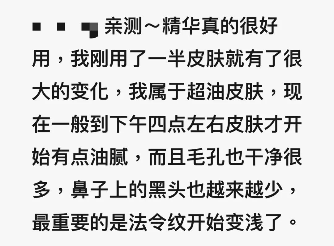 和其他精华相比,它没那么粘稠,至少上脸后不需要多余的按摩和时间就自己吸收了。