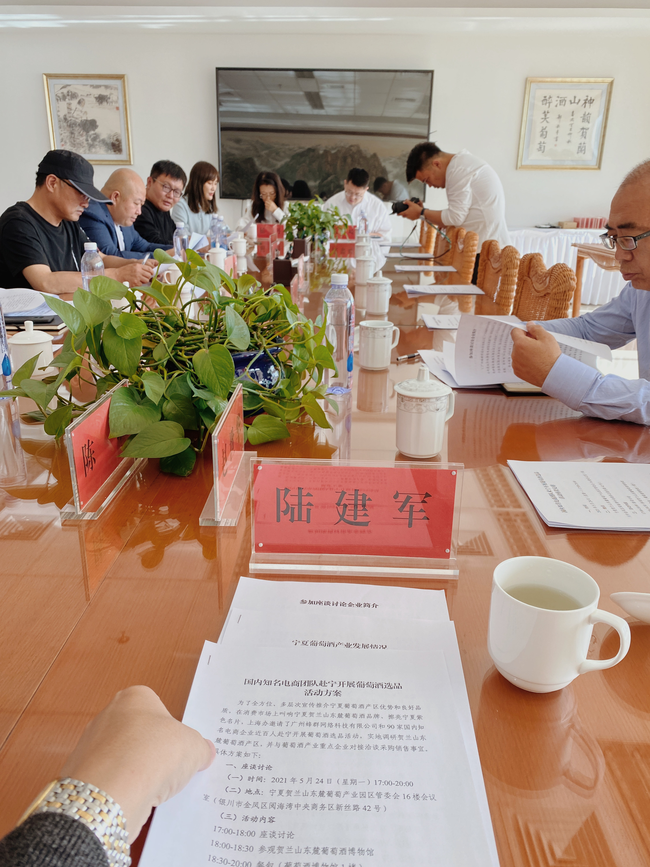 考察宁夏工厂,老陆和宁夏副省长的合影,一个副省长+8个厅长陪同晚餐
