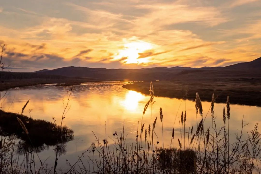 额尔古纳河临江屯日落,左岸是中国国土,右岸是俄罗斯国土