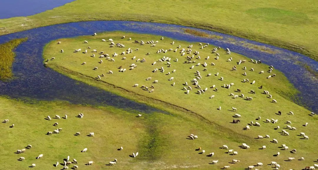 初秋的莫日格勒河流域,仍旧保留着草原的无尽风光:大片大片的绿色填满视野,成群结对的牛羊马点缀其间,再现了南北朝游牧民族:“天苍苍野茫茫,风吹草低现牛羊”的美丽富饶。