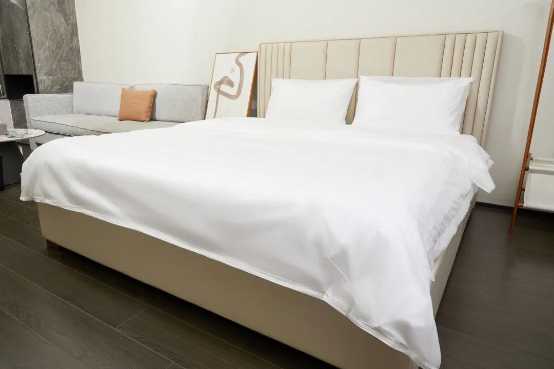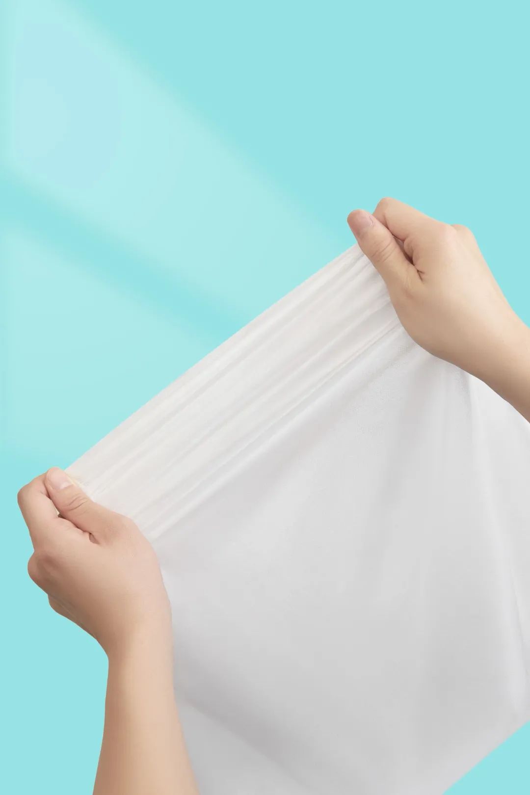 材质面料由细纤维经热熔粘接成形,质轻,比重为0.9是棉花的五分之三,蓬松柔软。所以当一次性四件套与肌肤的亲密接触时,触感细腻如牛奶般柔滑,肌肤0负担。