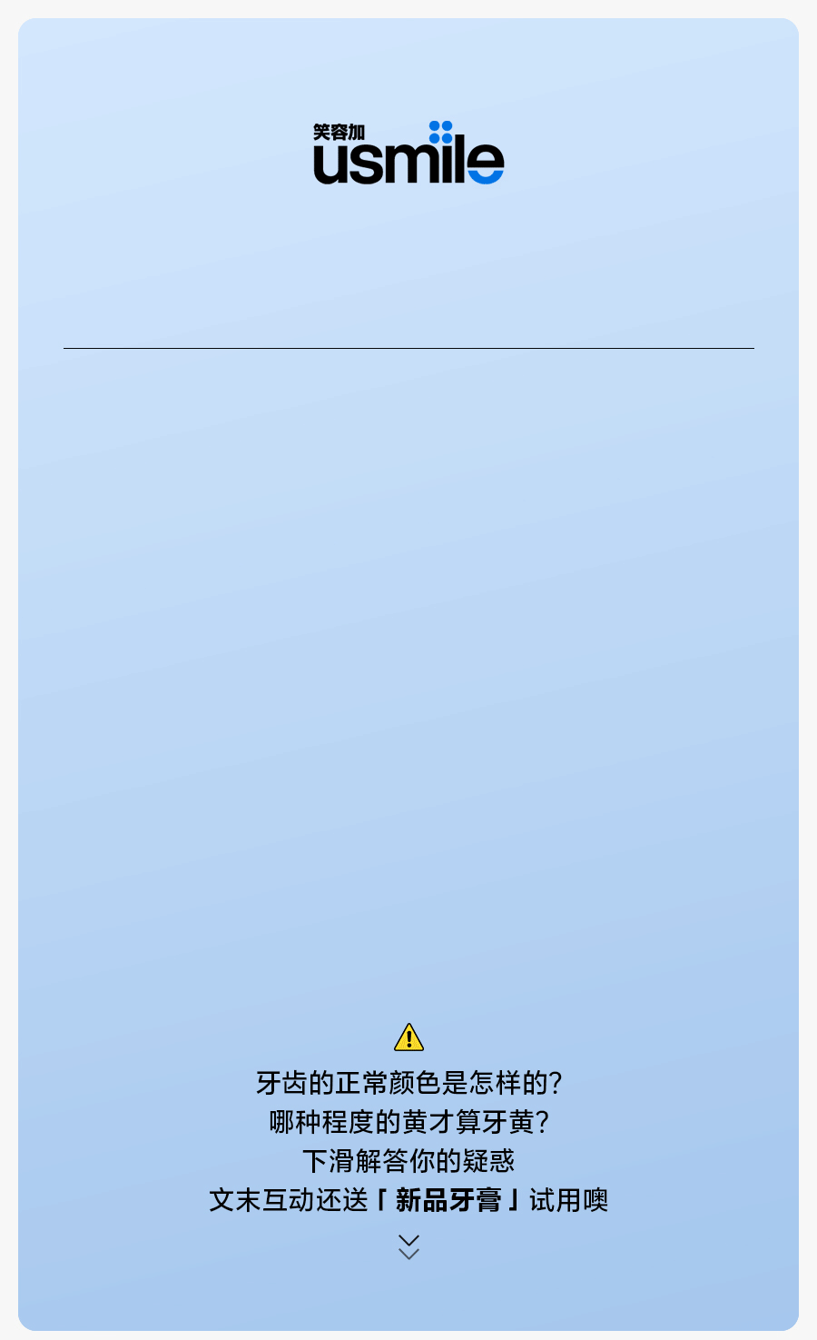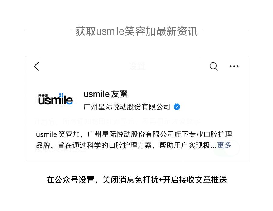 usmile笑容加,创立于2015年,致力成为全球用户首选的专业口腔护理品牌,以提升全球用户口腔健康水平为使命,见证和守护每一位用户的健康笑容。