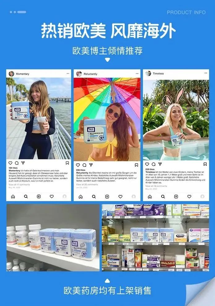 NA乳钙软糖在欧美线下商超火热销售,并收获了大批忠实客户,ins上好多博主推荐!