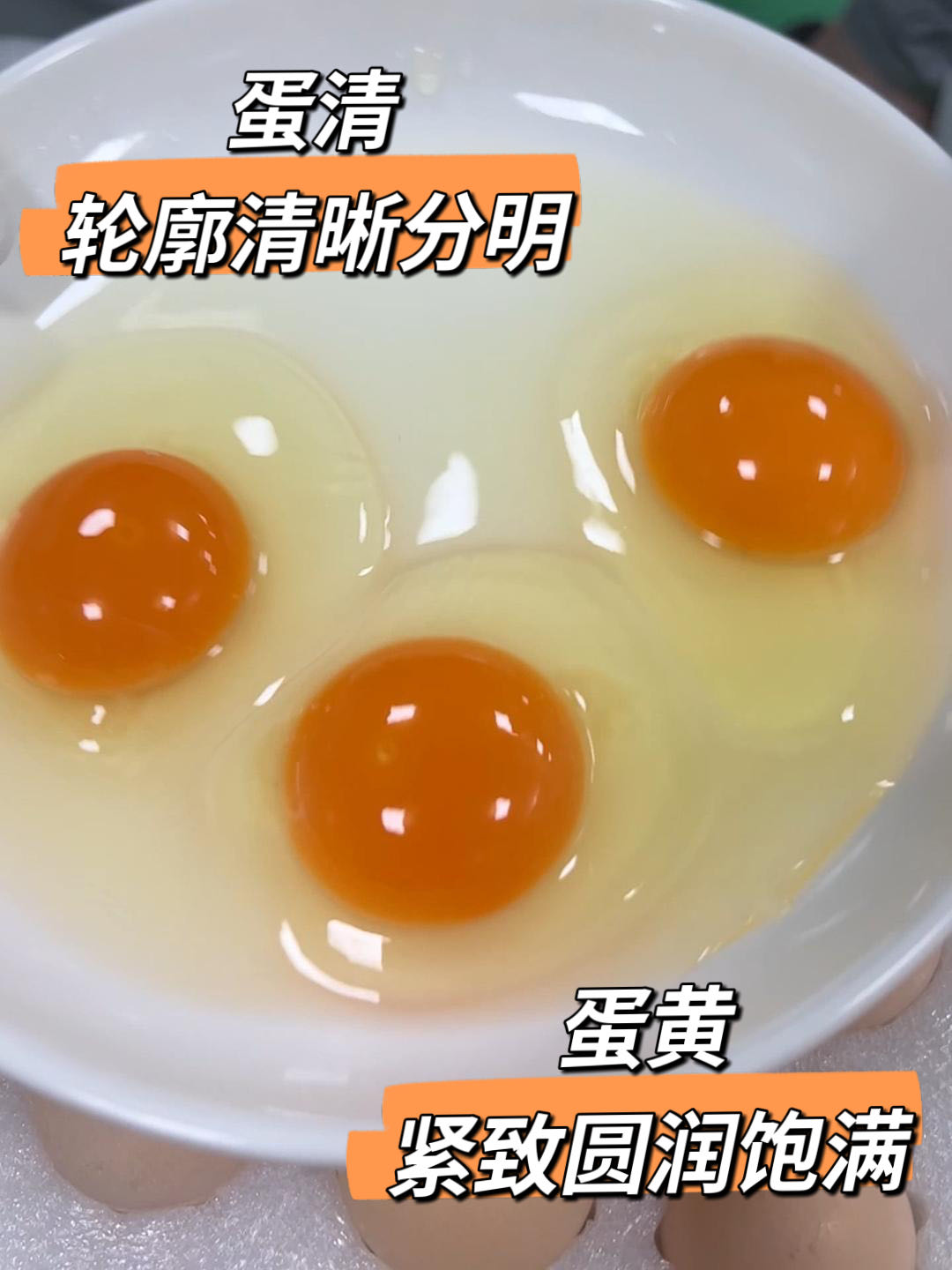 🥚蛋壳上气孔细腻,敲开后层层分明,稀蛋白干净透明,浓蛋白边际明显,蛋清垂直度高,蛋黄特别有粘性感。