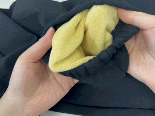 这条拿到手怪轻盈的,不由让人怀疑它的保暖性。结果仔细试穿后,发现它其实内藏玄机!