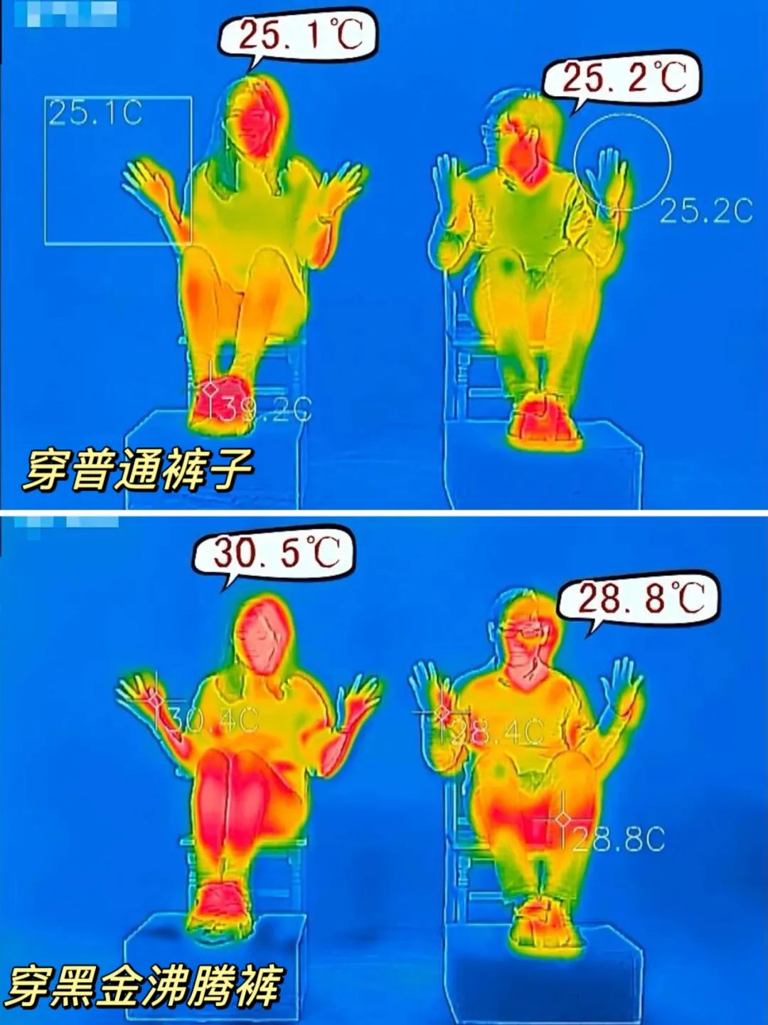 半小时后再次测量:普通裤子包裹的水下降了3.6℃,黑金沸腾裤只下降了0.5℃!