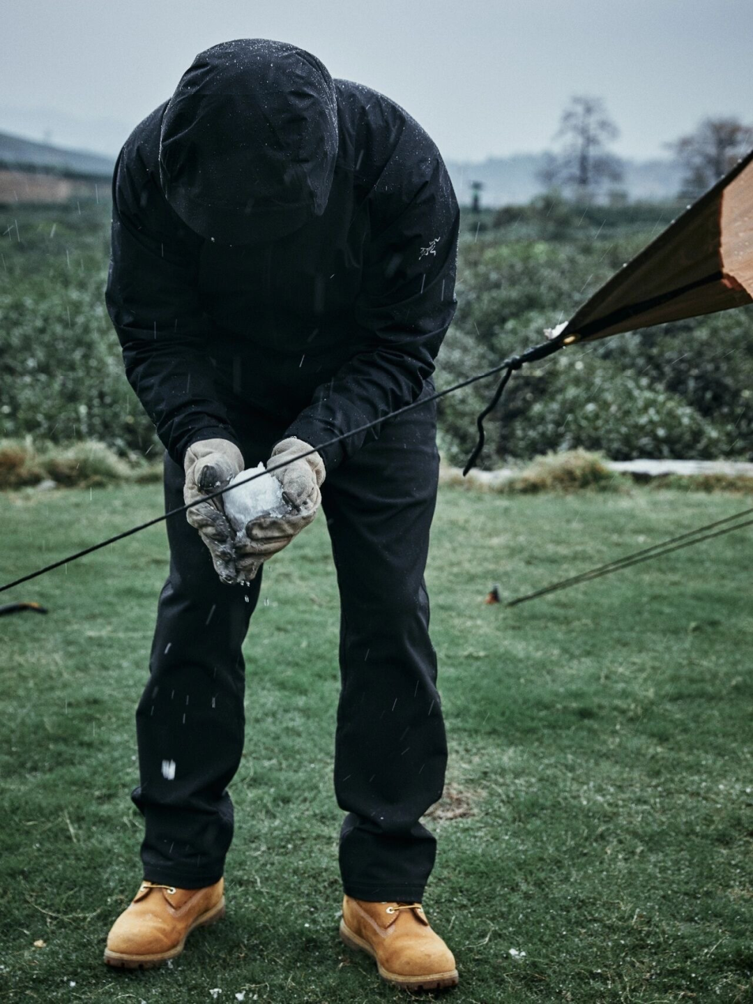 水泼洒上去会凝聚成珠,从裤子上滚落,下雨下雪都不带怕的~