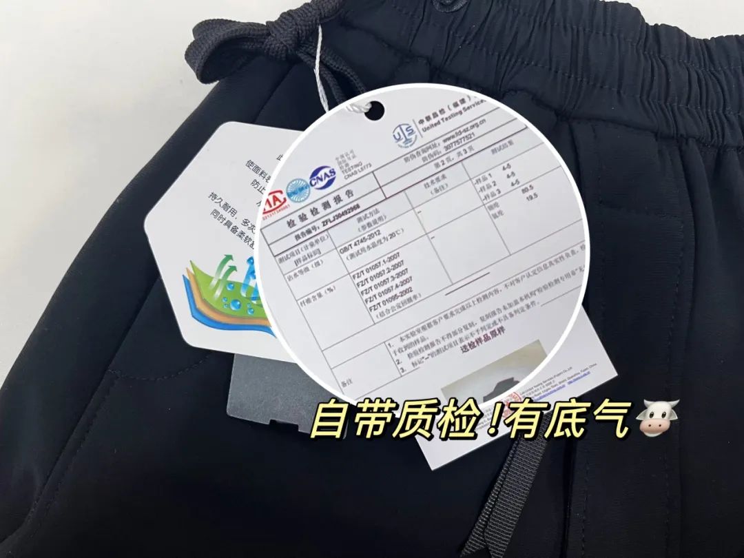 而且每件裤子都带有防水等级质检吊牌!真正有底气。