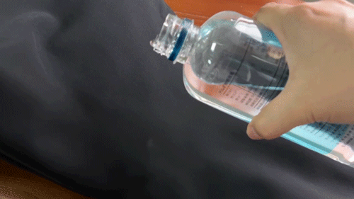 把刚烧开的热水倒在黑金沸腾布料上面,水持续咕噜咕噜冒泡了,是不是很神奇!