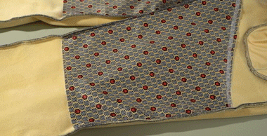 看我们的实拍,酷酷的黑金蜂巢结构,上面有N多个锁温的微孔,超牛的发热功能,穿上暖呼呼!