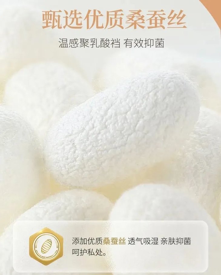 4、裆部添加优质桑蚕丝,亲肤抑菌,24小时呵护私处健康;
