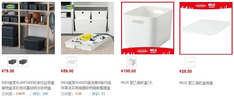 网上看了下宜家和MUJI的收纳盒,颜色没得选,而且价格真心不便宜。