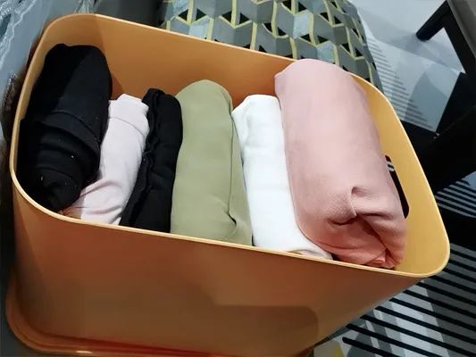 像咱们冬天穿的打底衫,大号的大概能装25件,一家人的秋衣一个它就能搞定。