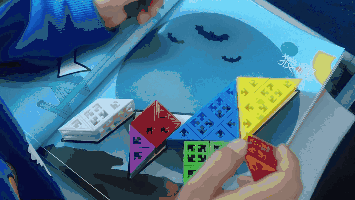 这是贯穿了品果积木全系列都有一款游戏——卡塔米诺,这款游戏用到的不规则形状数量是不同的,难度自然也随之有变化!