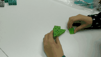 这两种情况我们都很难用语言和小朋友说清楚,但是只要把积木拆开一看,一切就非常清楚明了: