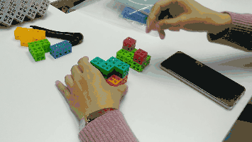 此外,还有一个对于孩子来说好像是一个思考盲点的概念,就是图形的翻转!旁观孩子玩这个游戏,发现很多时候即便反复多次尝试,她也根本就想不到“翻转”积木,若无外人提示,需要灵感突发与反复演练!