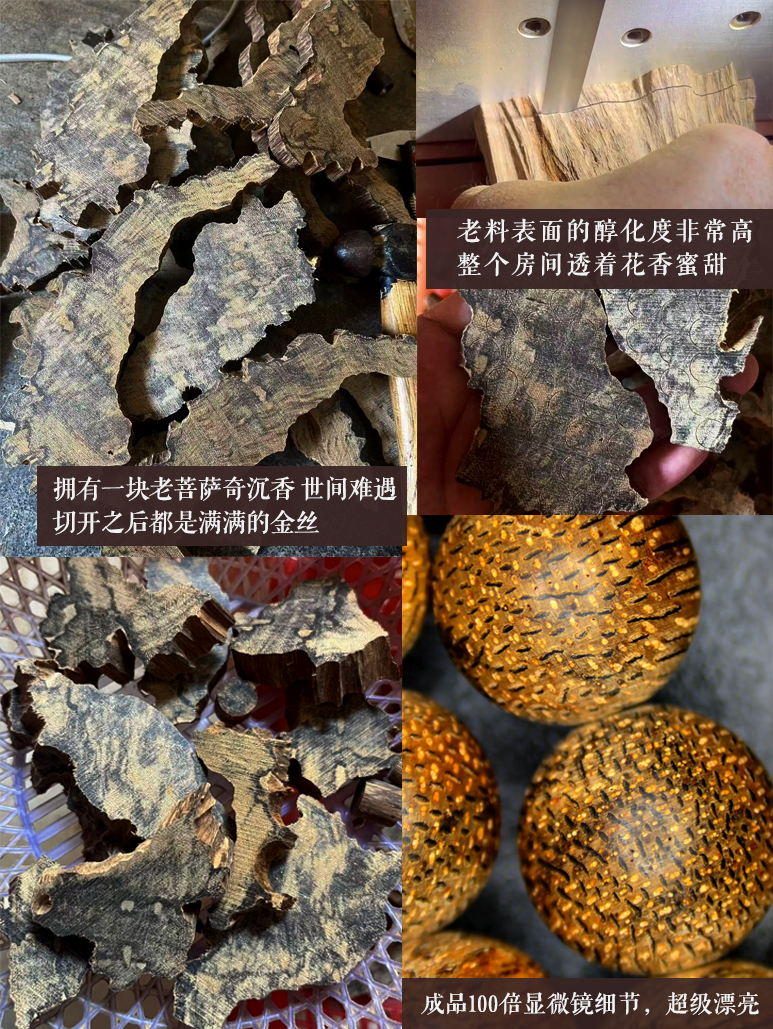 ② 品质之奇:指其品质出众、奇绝。在同一产区中,能达到“奇楠”般品质的沉香,才会被冠以“奇”字。虽然菩萨奇沉不属于传统意义上的“奇楠种”,但其香韵变化丰富、品质卓越,被爱好者们认为是菩萨产区的“奇楠级”存在,故称“奇”。